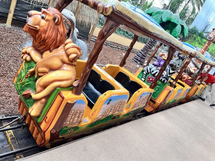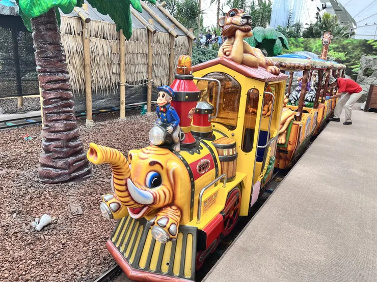 もちろんプール目的でしたが、電車好きな息子が園内にある小さな列車を見つけたので一緒に乗ってみると、、