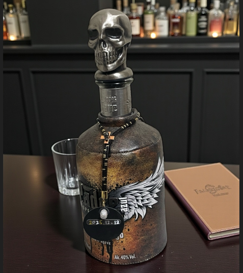 今回は、強烈な存在感を放つテキーラボトルに合わせ、スカルモチーフを主役に構築。無骨さ、緊張感、そして静かな色気を一本のボトルに纏わせています。